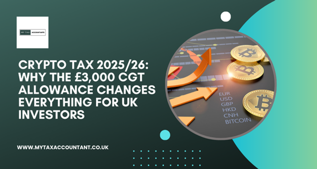 Crypto Tax 2025/26: Why the £3,000 CGT Allowance Changes Everything for UK Investors Understand UK crypto tax 2025/26: £3,000 CGT allowance, HMRC rules, strategies, and compliance for investors and business owners. https://www.mytaxaccountant.co.uk/post/crypto-3000-cgt-allowance